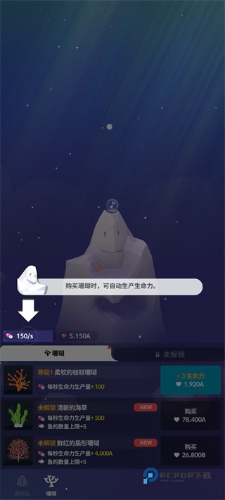 3、购买珊瑚后可自动生产生命力,后续可消耗生命力升级珊瑚,进一步提升产量。