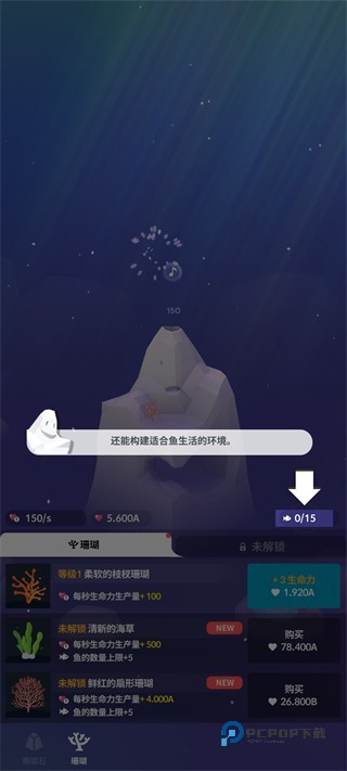 4、珊瑚构建的环境能容纳鱼类,注意鱼的数量上限,合理规划鱼类解锁。