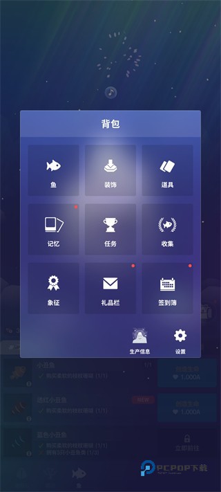 6、背包可管理鱼、装饰、道具等,及时查看任务、收集和签到簿,获取奖励与成就。
