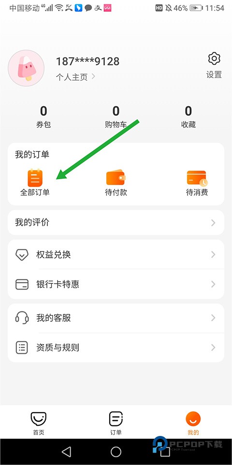 口碑APP-【我的】–【全部订单】-点击进入未使用的商品详情页-【查看订单】-【申请退款】