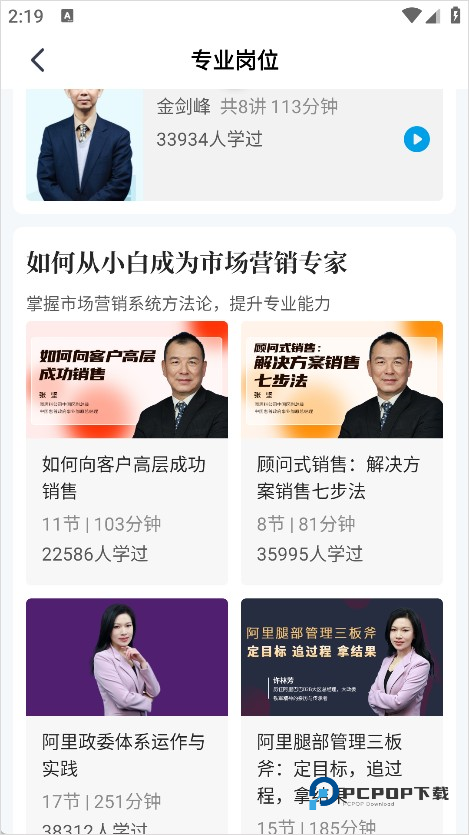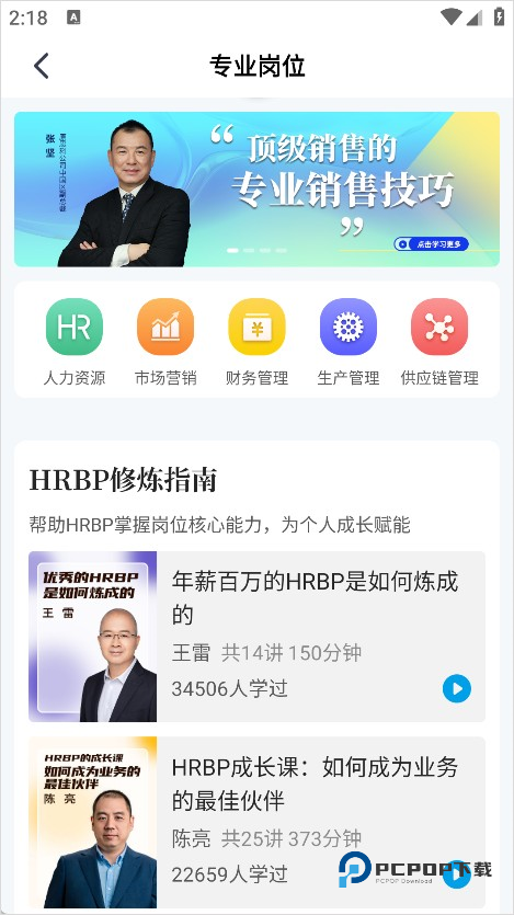 具体的使用可根据自身需求进行选择,如“专业岗位”提供了人力资源、市场营销、财务管理、生产管理、供应链管理等等,在每一个分院里都有对应的专业课程和知识解答。