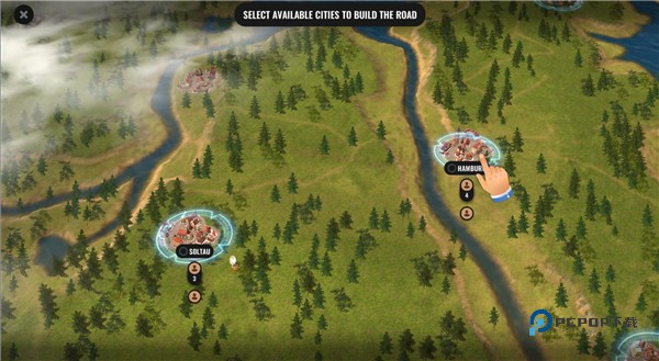 3、系统会智能标出当前城市可拓展的路线方向,自由选择你想开通的连接线路。