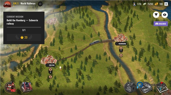 1、游戏初始阶段,你需要亲手创办一家属于自己的铁路企业,启动运营的第一步便是修建一条贯穿两个城镇的基础铁路线。点击轨道图标,即可进入建设模式。