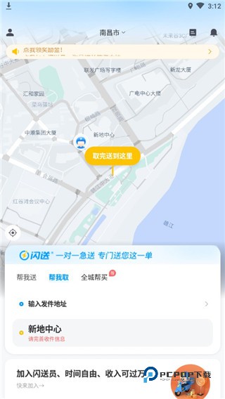 1、在本站下载并安装闪送同城配送,进入软件,将坐标放置在自己所在的地方,即可上门取货送出