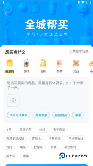 3、点击全城帮买,填写自己想买的东西,并提交即可等待快递小哥送货上门