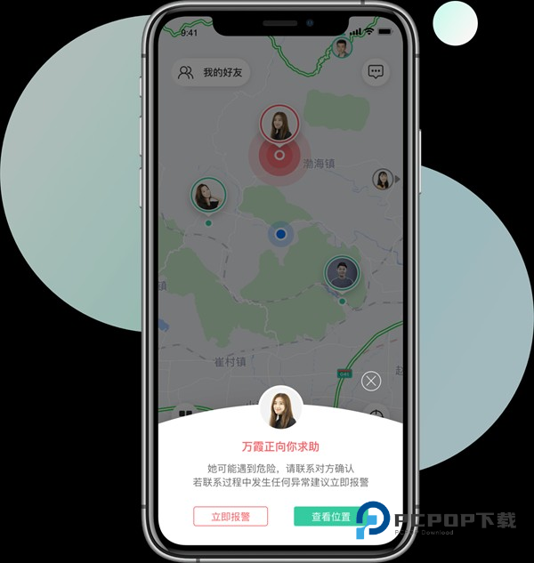 2)一键求助,向紧急联系人发起求助,持续共享位置;