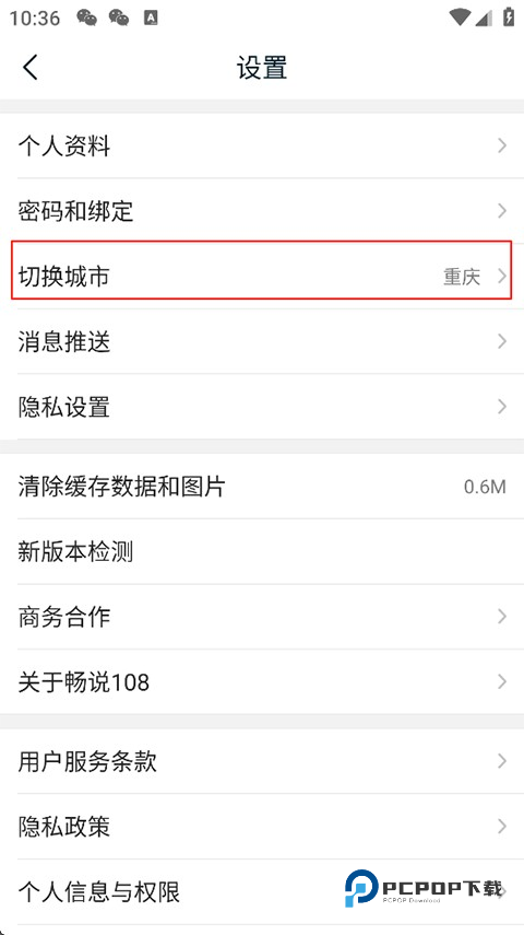2、在设置页面找到并点击切换城市;