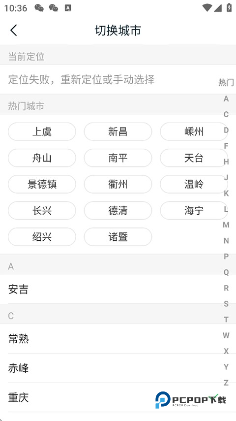 3、您可以自动定位到所在城市,也可以在下方手动选择。