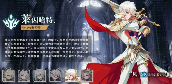 莱因哈特是隶属于[皇家骑士团]的骑士。虽然外表看起来青涩稚嫩,但实则上是[拉斐尔] 公认实力最为强劲的剑士,被众人被誉为“神眷顾的骑士”。莱因哈特天生便具有惊人的元素亲和力,在成年后对六属性元素的操控水准更是达到超一流的水平。但是不知何故,在战场上,他却执着于使用最为柔和的风元素投入战斗