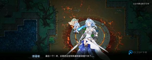 这个游戏是一关过了,才能解锁下一关。每个角色都有一个核心技能,和三个小技能,以艾欧为例,核心技能需要40能量,小技能需要5能量。进入地图遇到小怪,角色会自动开打,不需要按键的,只有在放技能时需要。小怪被击杀后,会掉落经验书,装备,宝石等,击败BOSS,会掉落更多。在地图里要是遇见了不攻击你的精灵,记得捡一下,还有大敲钟啥的,都点击对话一下,会给一些额外的奖励。