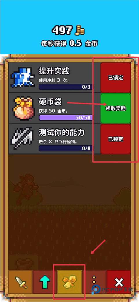 2、金币收集后点击右下角的钱袋,进入购买界面,然后使用金币解锁任务,例如训练任务