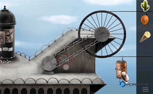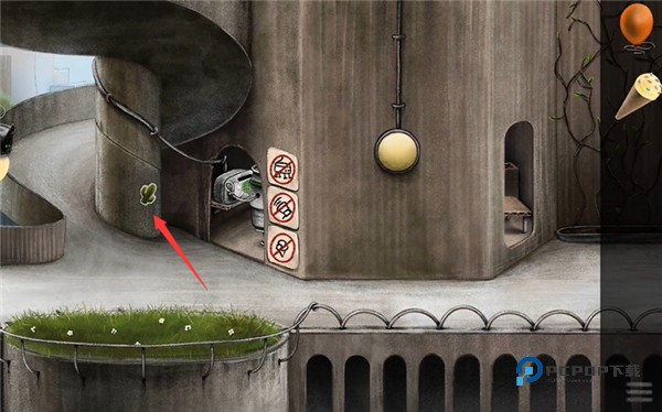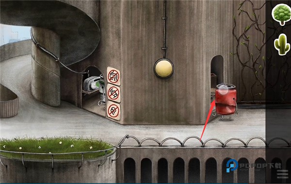 17、继续向右走进入下一个场景,点击图中位置的铁链获得铁链道具。
