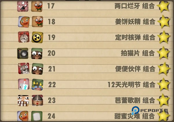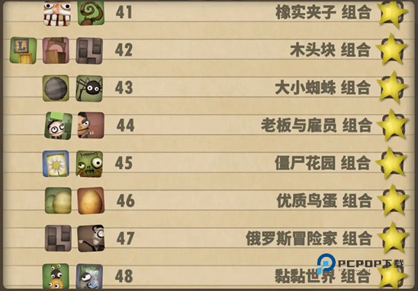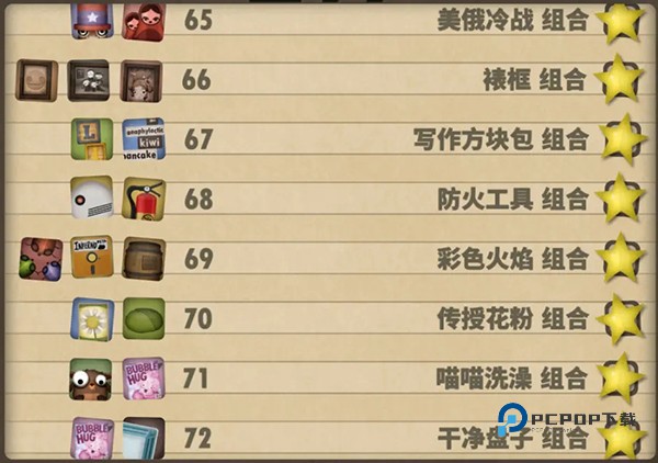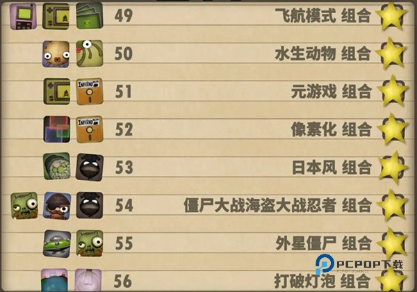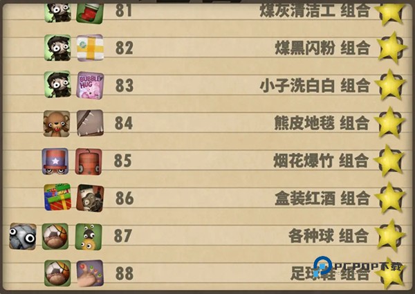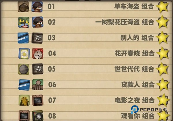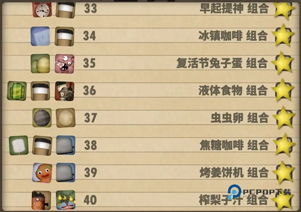 五、33—40组合:僵尸花园组合:Instant Seed Packet(1) Toy Zombie(4);等蛋组合:Egg Pack(3) PhoenixEgg(4);令人费解的冒险组合:Tetronimos(4) Gentleman Adventurer Doll (4);粘粘世界组合:Goo Ball Pack(4) Casual Game(4);飞行模式组合:Cell Phone(4) Handheld Fireplace(4) Gaming Tablet(4);水下组合:Blowfish(3) Miss Hexopus(4);嵌套游戏组合:Handheld Fireplace(4) Beta Version(4);像素像素化组合:Pixel Pack(4) Beta Version(4)