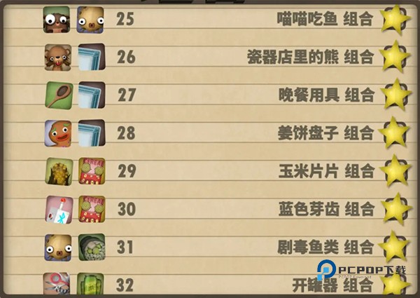 三、17—24组合:定时炸弹组合:Alarm Clock(1) Mini Nuke(2);喵星人组合:Wandering Eye(2) Kitty Kitty Poo Poo Plushie(2);小猫吃鱼组合:Kitty Kitty Poo Poo Plushie(2) Blowfish(3);瓷器店中的熊组合:Feelings Bear Plushie(2) Fragile China(3);玉米片组合:Corn on the Cob(1) Tooth 'n'Corn Breakfast Flakes(3);死鱼组合:Blowfish(3) Discount Sushi(3);醒来!组合:Alarm Clock(1) Coffee(3)