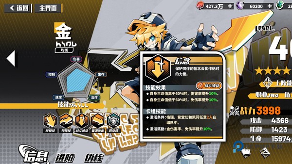 4、最后升阶之后属性的提升当然也是要比其他角色高出去不少,这几个角色都是潜力角色,但却不是零氪党的选择,因为都是前期无法满星的角色,实力不突破基本上谁都打不过。