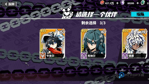 最后这个模式最好的地方就是还能让玩家体验自己没有的角色,一次通关可以选择一个随机的金色合紫色以及蓝色的角色加入自己的队伍,可以上场战斗基本上合自己的角色没有多大的差别,强化一样可以获取碎片。