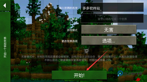 2、创建成功之后,创建游戏昵称,选择游戏模式、出生难度等,设施完成后,点击下方的开始;