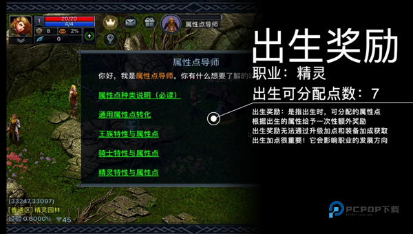具体的出生奖励和属性加成部分,大家可以去游戏内各个新手村,找到属性点导师查看。
