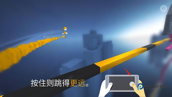 2、跳起之后再用右拇指轻触一下并且长按,这样就能跳得更高且更远,到达跑道上后就能松开。