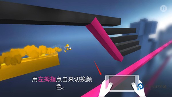 1、用一只手单击以更改颜色,用另一只手单击以跳转。掌握换色时间,找到合适的跳转时间,合理配合跳转和换色操作。你会发现这是一个非常有节奏的游戏。