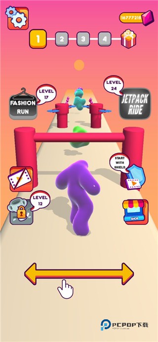 2、经典的跑酷玩法机制,。加上果冻人的创意性玩法规则,游戏更加有新意。