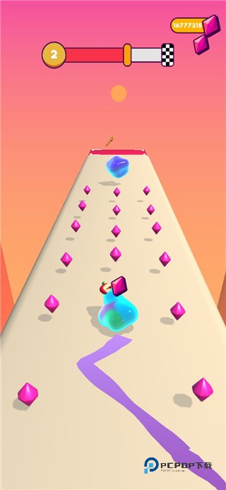 一旦碰到致命的障碍物,果冻人就要重新开始游戏了,如果路上可以收集足够多的果冻让身体变大,则可以在终点获得意外奖励哦,遇到障碍物也不要怕,果冻人吃更多果冻就会恢复身体,还可以选择不同风格的帽子和皮肤给果冻人。