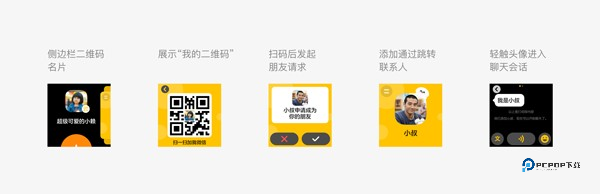 二维码加朋友:在侧边栏轻触头像展示孩子的二维码名片,亲人、老师可以用微信扫码并发起朋友请求,在手表通过请求后会添加为朋友。