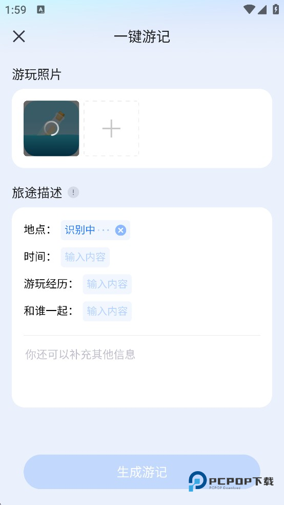 3、输入一些基础的信息,然后点击“生成游记”