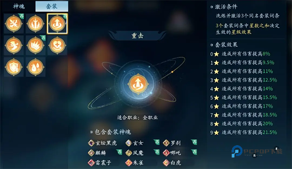 5、重击,一块拥有传统佳话的神魂,打的越重爱的越深的说法,适用于各职业,可用来打仙侣,打敌人,打副本,造成所有伤害提升%,个人推荐还是在侠侣的效果能发挥最大的伤害效果,作为攻击神魂的通用神魂适用所有职业,包括玲珑。无脑换他就可以了,可适用区域广泛。