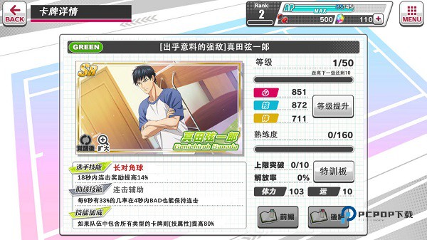 特训板的解放除了消耗特训道具,还对于卡牌等级或熟练度有一定的要求,熟练度可以通过参加比赛进行提升。让王子们多多地去赛场上磨练球技吧!