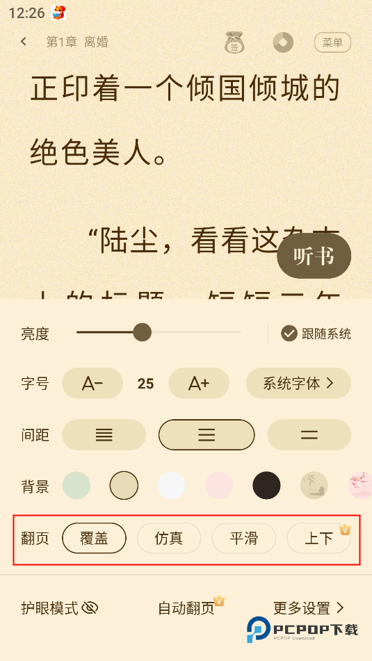 阅读界面可自由调整:用户可以根据个人习惯修改字体大小、背景颜色以及翻页效果。