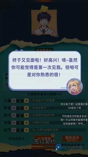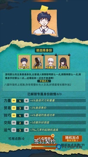 2、创建属于自己的角色,并根据提示分配初始属性点,打造个性化钓手。