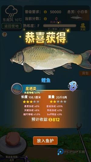6、最后即可查看钓获结果,欣赏自己收获的第一条鱼。