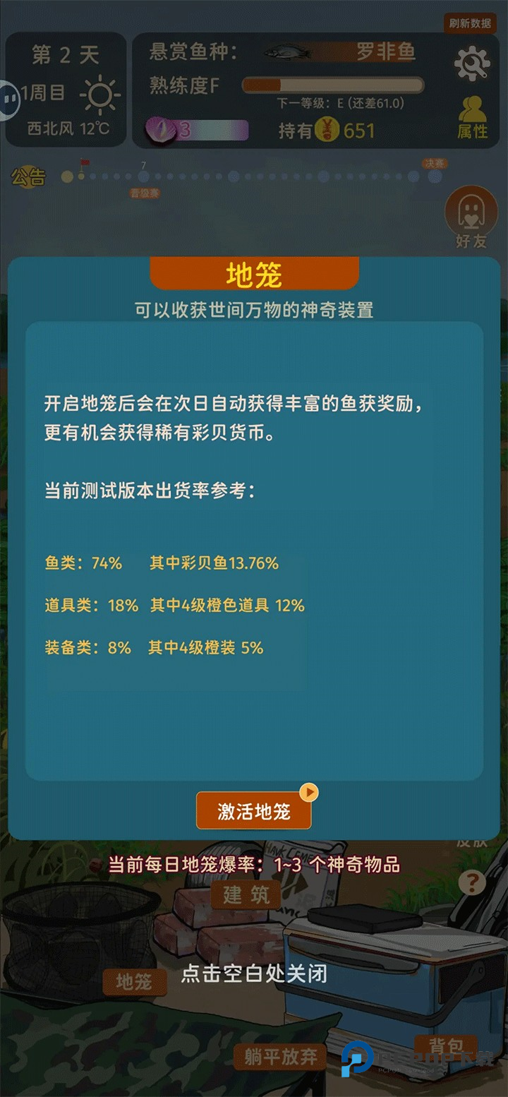 拿到了免广卡以后,我们可以直接点击地笼,然后在第一天就解锁地笼(不着急的可以等第五天,小田花会帮你免费解锁地笼一次)