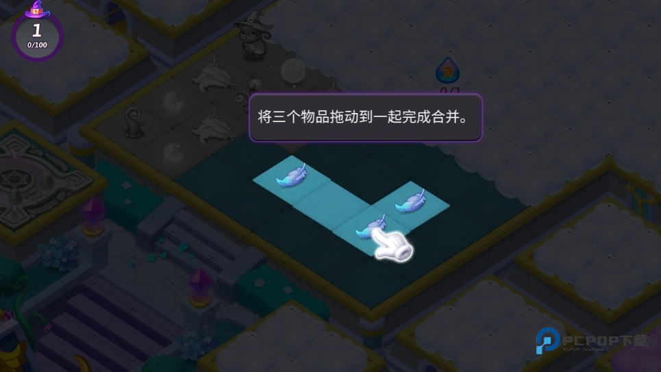 1、首先,玩家在本站下载并安装好游戏之后,打开进入,会有一段简单的教程,可以帮助玩家初步熟悉游戏的操作;先将三个相同的物品拖动到一起完成合并;