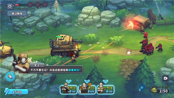 1、卡通画风,玩家竞技对战的战场以及参与对战的作战单位均以卡通风优化。
