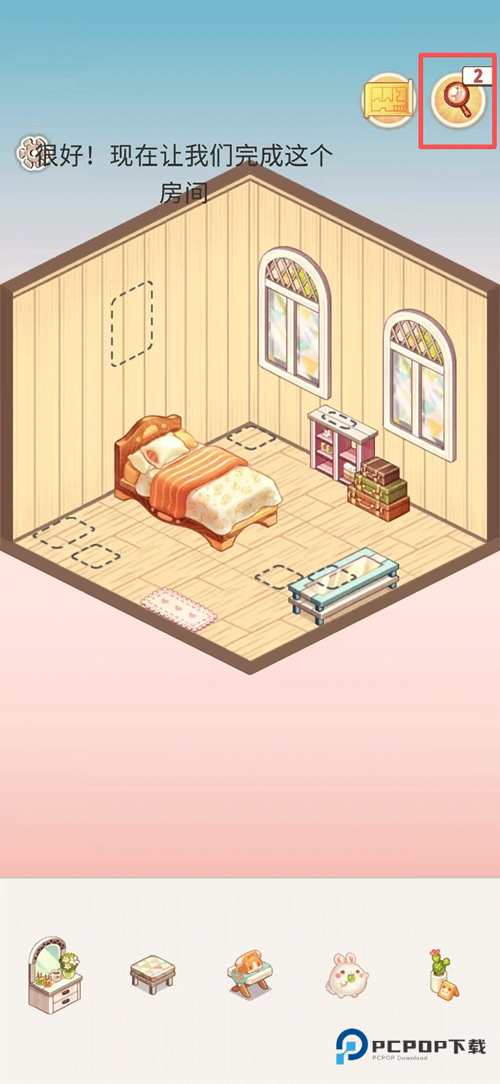 4、还可以使用提示按钮获取布置方向,帮助你更轻松地完成房间装饰。