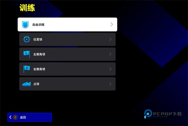 2、新手玩家对游戏不熟悉,可以点击“额外选项”,再点击“训练”,可以进行自由训练、任意球训练、左侧角球训练、右侧角角球以及点球训练
