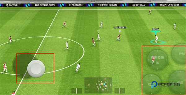 6、开始游戏,游戏左侧可以移动球员的位置方向,右侧可以对球员进行动作设置