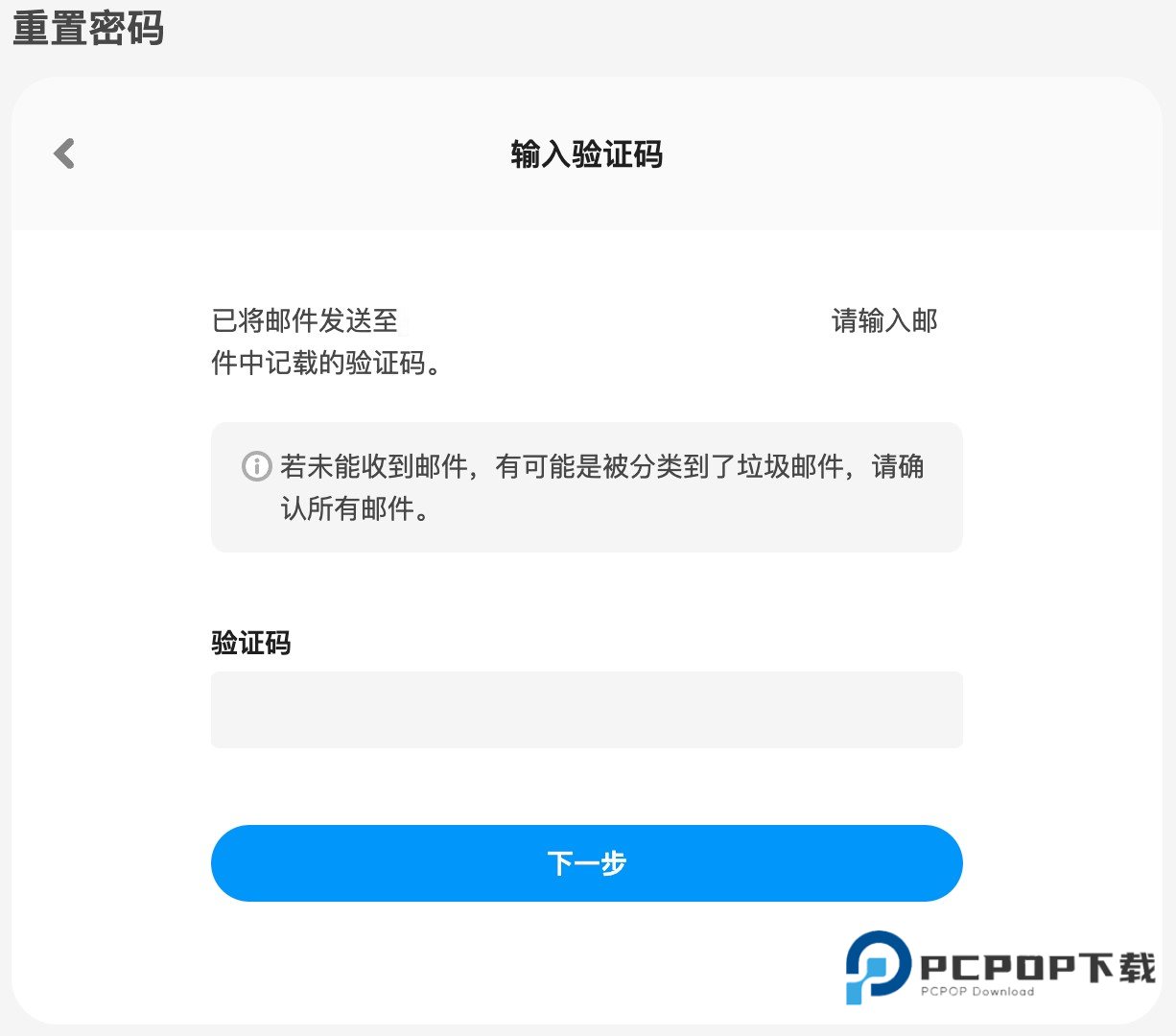 3、请将重置密码邮件中所记载的验证码,输入至验证码栏。