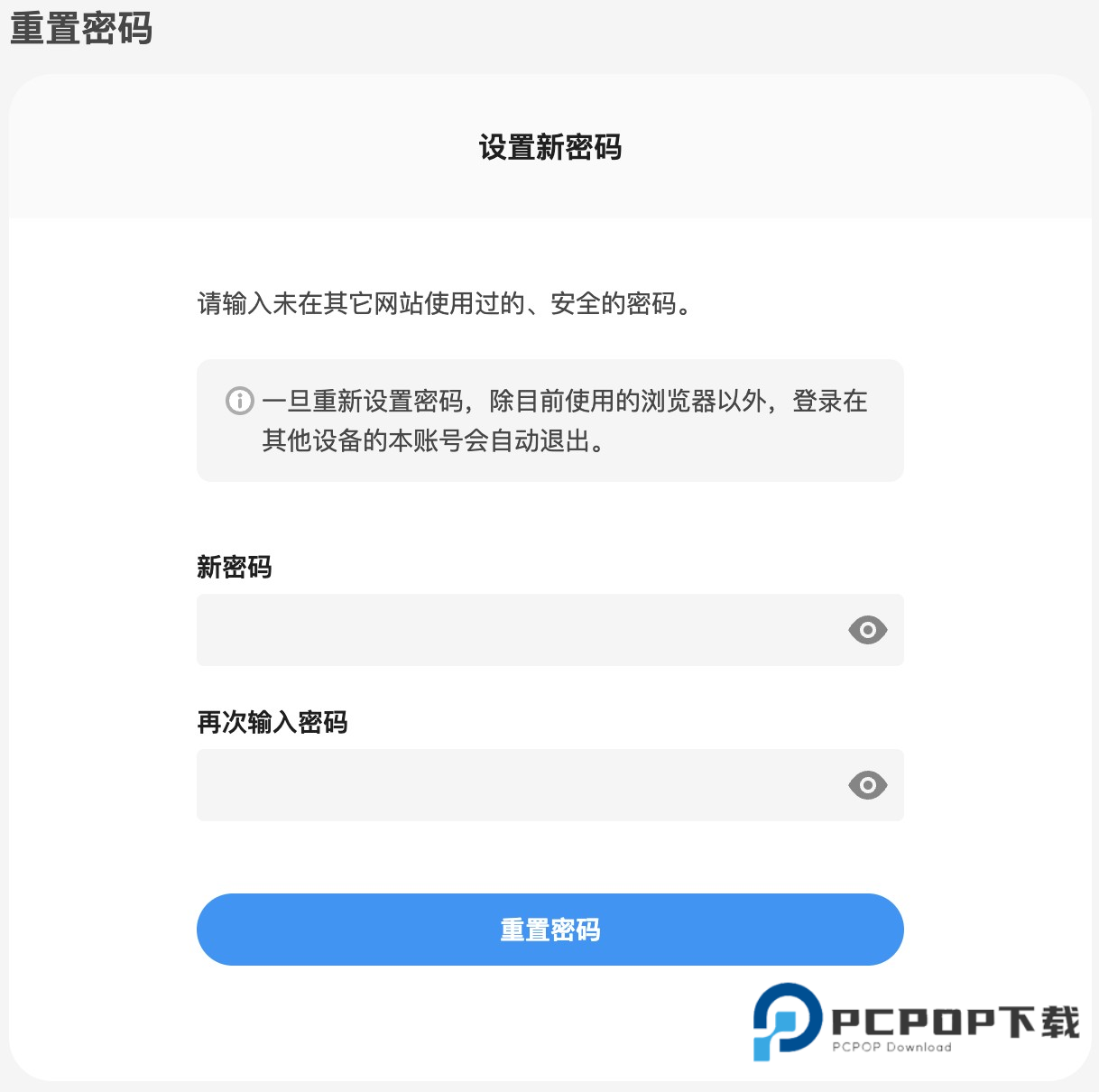 4、输入验证码并点击「下一步」按钮后,将会显示密码设置画面。