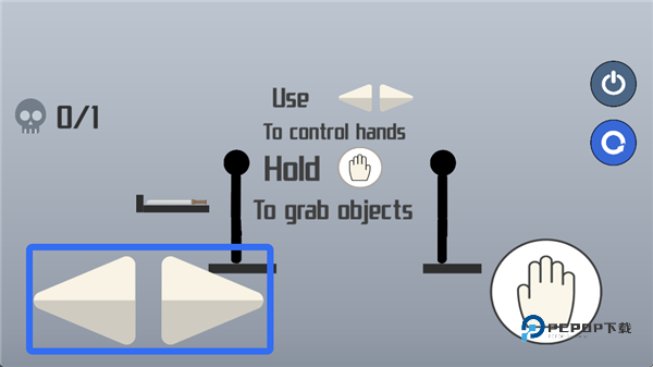 2、使用左右两按钮移动手部。
