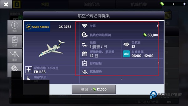 3、玩家签订合同之前合一看到和航空公司合作的预期收益。
