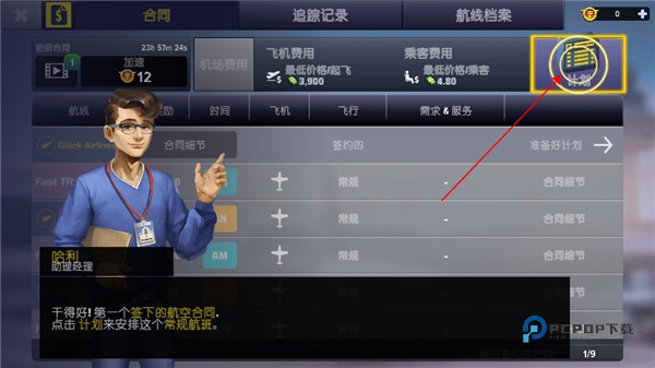 2、经营机场的第一步就是需要签订各种合同,玩家可以点击合同和航班公司签订合同。