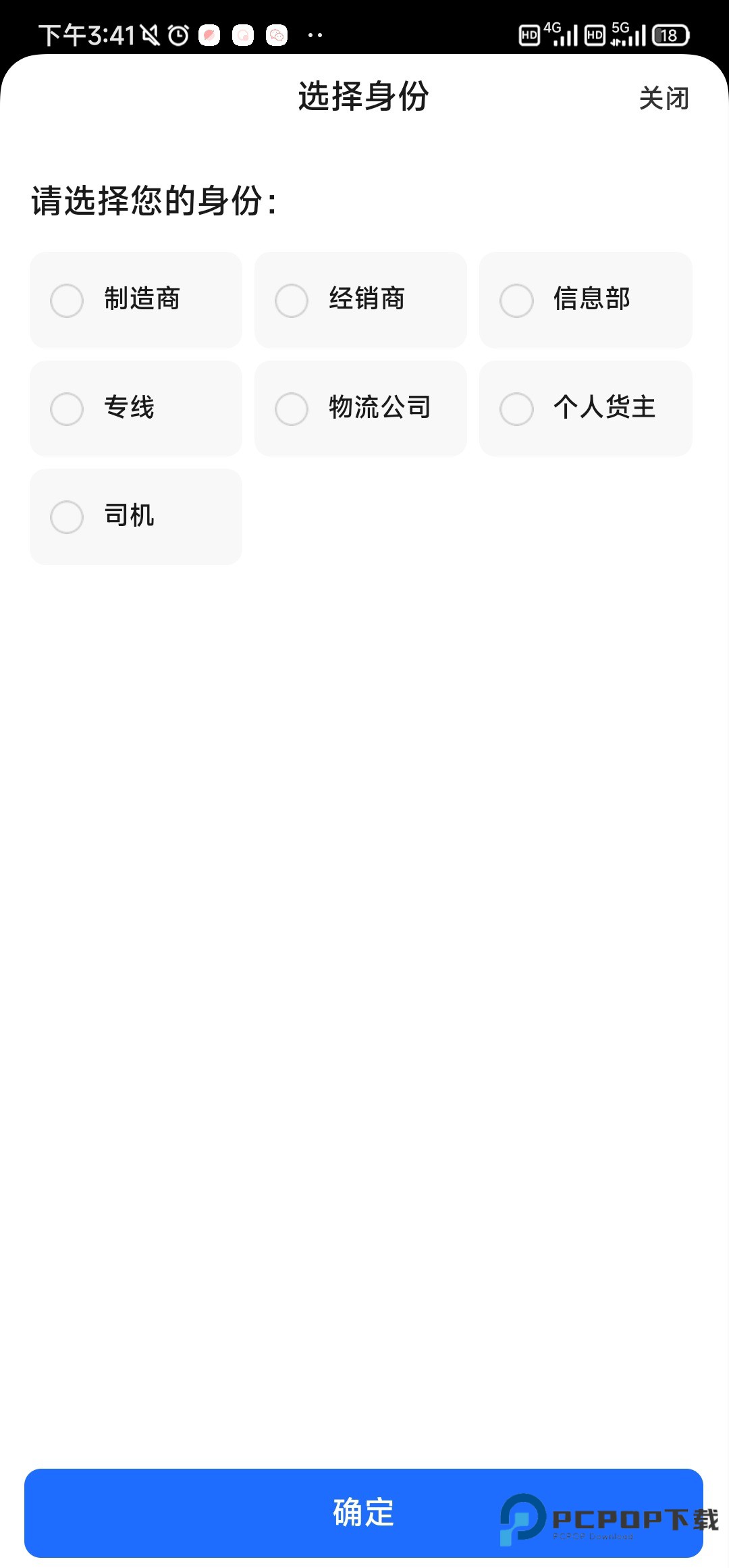 1、打开登录应用后,选择货主具体身份。