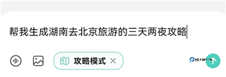 2、在输入框中输入你的需求,如:帮我生成从湖南区北京旅行的三天两夜攻略。