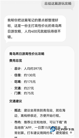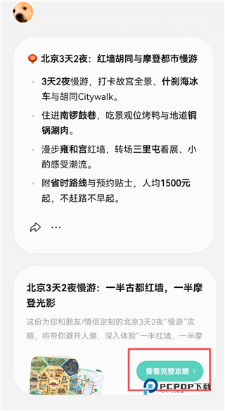 4、点点就会搜索各种信息,生成一份专属攻略。