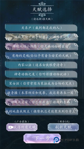 3、选择自己的天赋,在养成过程中会给予很大的帮助