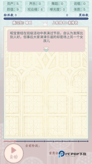 重生顶流练习生是一款以娱乐圈选秀为题材的文字模拟养成手游,玩家将扮演意外重生的练习生,重新书写命运,你需要通过舞台表现、才艺展示和关键抉择提升实力,与绿茶女二、普信富二代等竞争对手博弈,同时积累人气和粉丝支持。重生顶流练习生下载的玩法轻松,文字剧情丰富,每次选择都会影响后续发展,让玩家从默默无闻的小角色成长为闪耀全场的顶级流量明星,实现出道梦想。