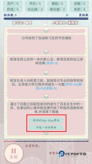 重生顶流练习生剧情紧凑、文字生动,卡通风格画面精美,操作简便,策略与剧情结合紧密,每次选择都充满悬念,适合喜爱女性向养成和选秀题材的玩家。通过舞台表演、人际互动与才艺比拼,玩家能切身体验娱乐圈的竞争与成就感,是休闲文字养成游戏中的佳作。